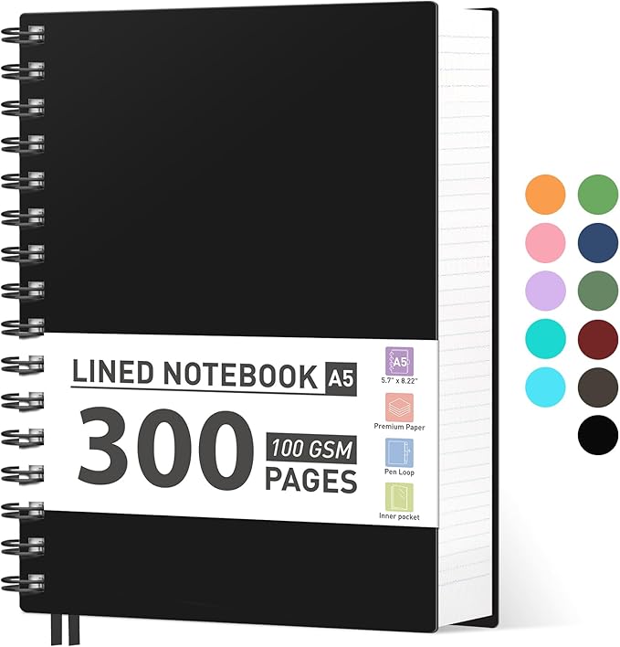 AHGXG Spiral Notebook College Ruled - Spiral Journal A5 Smal Notebooks for Work, 100GSM Thick Paper, Plastic Hardcover, for Office School Writing Notes,5.7" x 8.3", Black