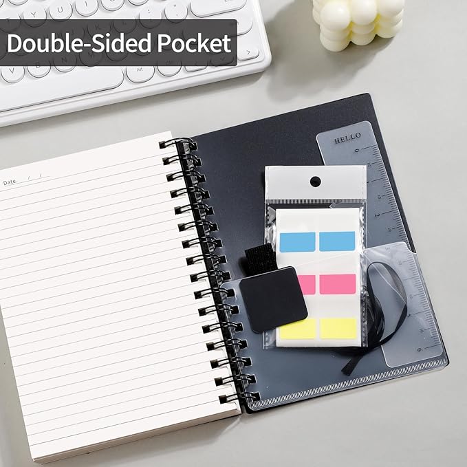 - 300 Pages Spiral Notebook: With 150 sheets/300 pages of classic 7mm college ruled paper, small size 5.7" x 8.22". Provide plenty of writing space for you. With 18 pcs divider sticky notes for better classify and make you more professional