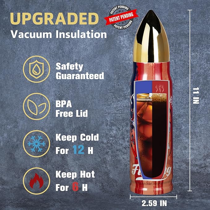- Portable 17oz Bullet Water Bottle: Our bullet cup fits most car cup holders. You can enjoy drinks with the gun gifts for men unique at many occasions such as home, office, fishing, hunting, beach, camping, picnic, hiking, etc. Also it is a cool home decor