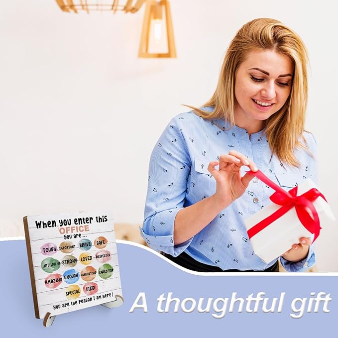 Inspirational Therapy Office Wood Sign Desk Decor Mental Health School Counselor Office Decor Sign Cubicle Decor Plaque with Wooden Stand Rustic Home Table Shelf Psychologist Therapist Coworker Gift