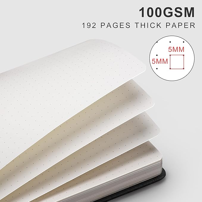 - Versatile Dotted Notebook: Suitable for bullet journaling, note-taking, and sketching this A4 size notebook features 192 pages of 100gsm acid-free paper with 5 mm x 5 mm dot grid spacing to provide neatness on both sides