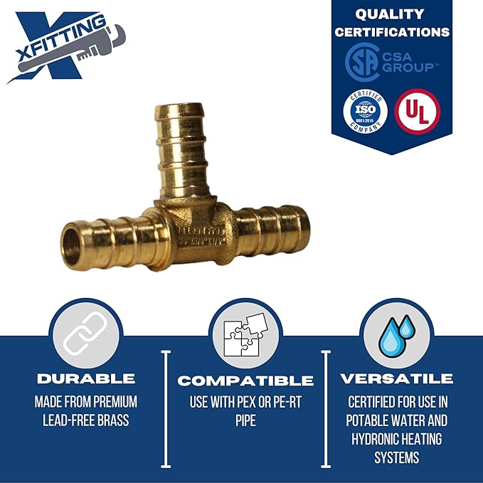 10 Pieces XFITTING 3/8" x 3/8" x 3/8" Pex Tee, Pex B Crimp Version 25-5-7=10X (10 Packs)