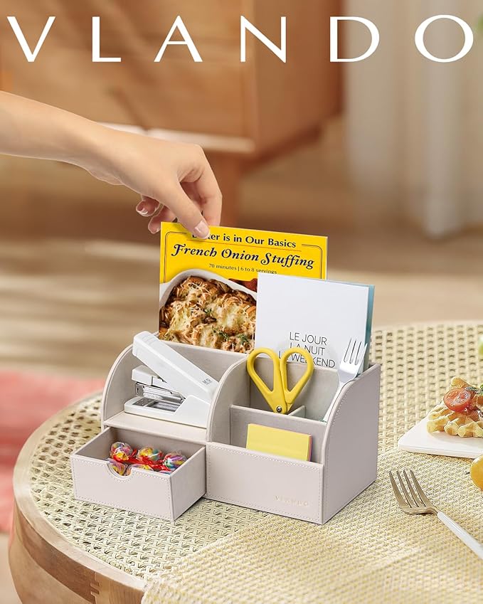 - MULTIFUNCTIONAL ORGANIZER: Desktop storage can be used in the office to store signing pens, headphones, binders, sticky notes; in the room to store air conditioner remotes, eyeglasses, books, etc.; in the living room can be used to store TV remotes, batteries, headphones, and other household items