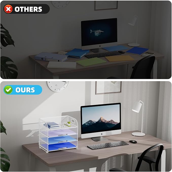 - 【MULTI-PURPOSE ORGANIZER】4-tier layered design and large capacity make the paper organizer become an ideal choice for managing all kinds of letter-size letters, paper, books, bills, etc. Let you quickly identify the contents of each compartment super easy!