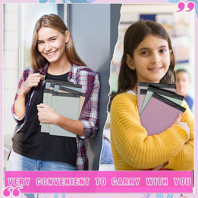 Lincia 24 Pcs 12 Pcs 5" x 8" Small Legal Pads Colored Lined Note Pads Narrow Ruled Writing Notepads 50 Sheets Per Micro Paper Notebook Lined and Perforated for College Office Supplies (Sweet Colors)