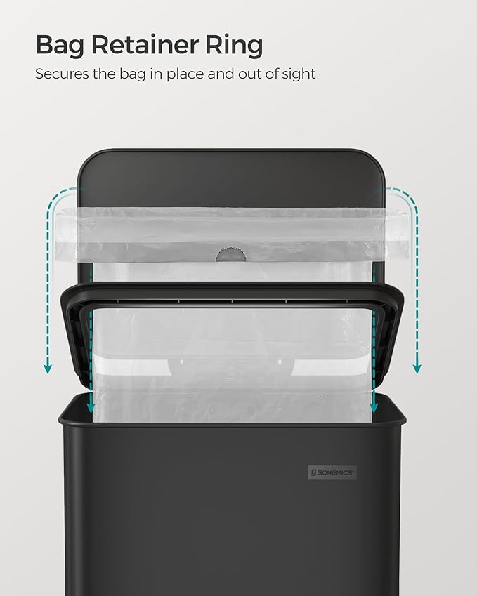 - [15 Garbage Bags Included] To get you started, we've included 15 custom-fit SONGMICS trash bags (code 050A), designed to perfectly fit this step trash can