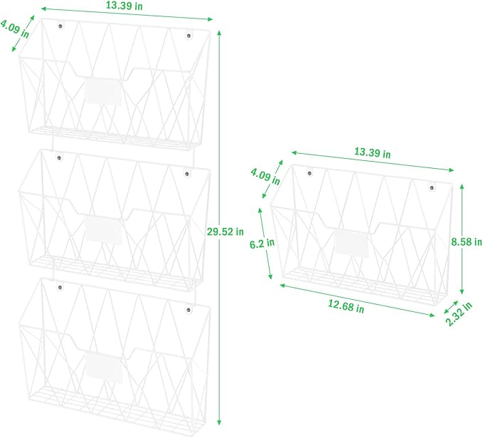 - 【Easy to Install】The office hanging organizer comes with mounting hardware that can be easy to install, no assembly required. You can stack the three wall baskets together or separately to install a office wall organizer according to your needs to organize your magazines and important documents.