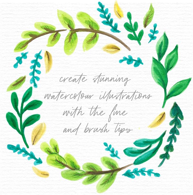 - Two tips on the one marker: On one end is a watercolor felt tip brush that offers stunning color and vibrancy to create gorgeous brush strokes that are blendable for shading and coloring. At the other end is a 0.4 fineliner for outlining and detail