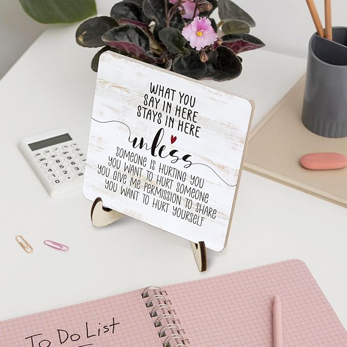 Wooden Mental Health Plaque - Desk Sign for Psychology, Therapy & Counseling Offices