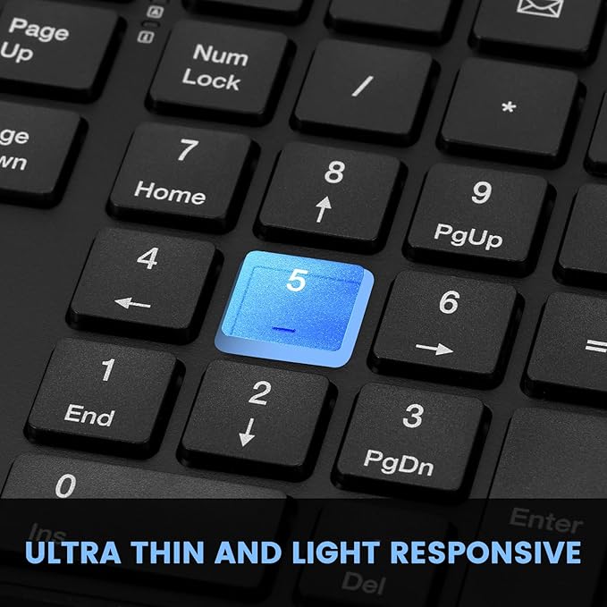 - 【Full-Size Ergonomic Keyboard 】Wireless keyboard is compact and light weight, but provides full-size keys, arrow keys, number pad, 12 multimedia shortcuts greatly simplify your work and more focus on the task at hand, making it a great choice for most offices.