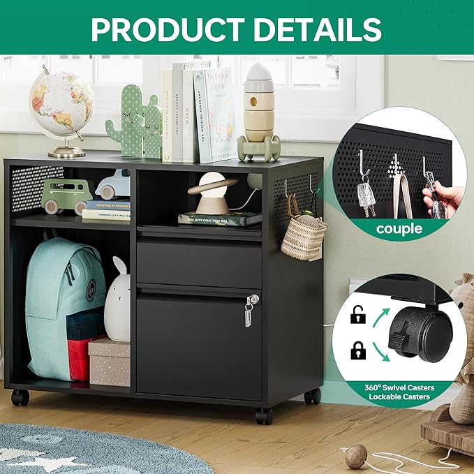 - 『Multifunctional Filing Cabinet』Lateral filing cabinet with open storage spaces, organization and storage drawers,holds printer stand and office craft storage,side hole panel design is beautiful and can hang items,modern delicate appearance ornamental to your office & home.