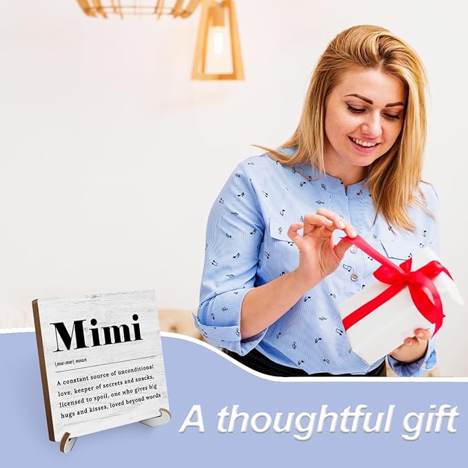 Mimi Definition Wood Sign Desk Decor Funny Grandma Gifts Rustic Office Cubicle Decor Plaque with Wooden Stand Farmhouse Positive Office Desk Accessories for Home Table Shelf Centerpieces Mothers Day