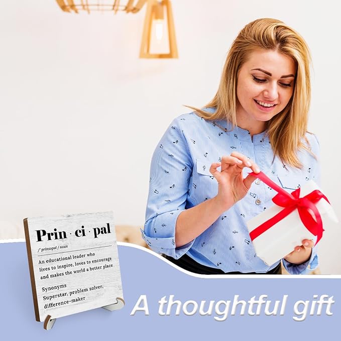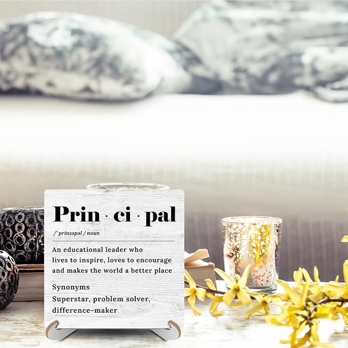 School Principal Definition Wood Sign Desk Decor Rustic Office Cubicle Decor Positive Assistant Principal Plaque with Wooden Stand Funny Office Desk Accessories for Home Table Shelf Principal Gifts