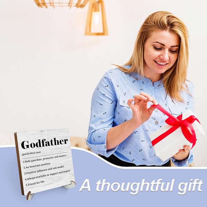 Godfather Definition Wood Sign Christian Desk Decor Rustic Office Cubicle Decor Positive Plaque with Wooden Stand Farmhouse Religious Office Desk Accessories for Home Table Shelf Godfather Gift