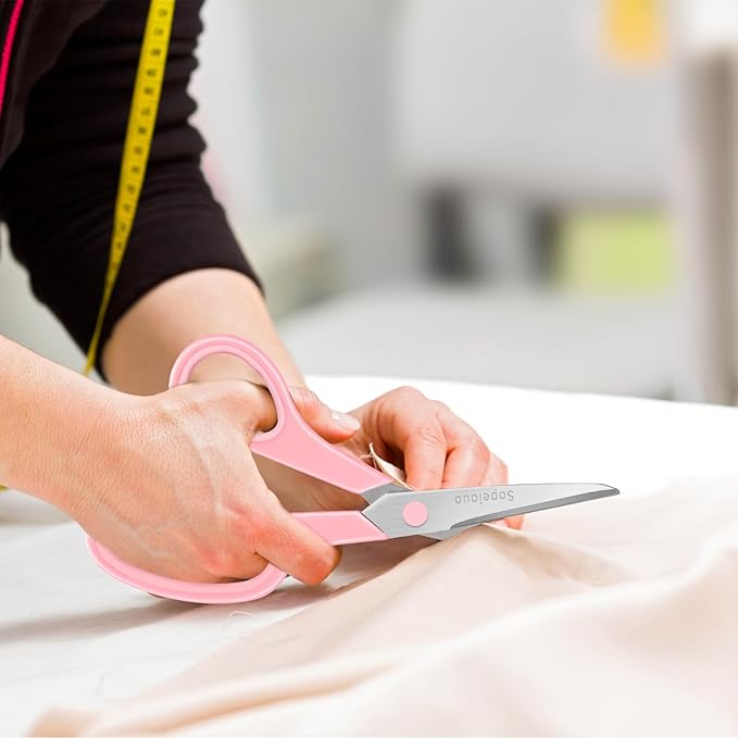 - All Purpose Scissors -- Heavy duty scissors, great for most regular household tasks, such cutting through paper, thin cardboard, poster board, light ribbon, tape, photos, light fabric, card stock, medium plastic, foam, foil, burlap, canvas,Perfect for sewing, tailoring, quilting, dressmaking, cutting patterns, alterations, hand craft