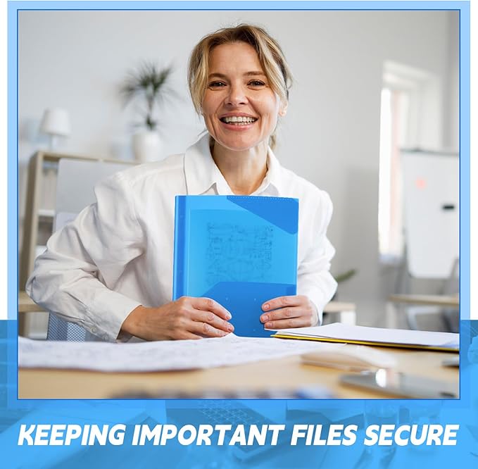 - Durable Material: constructed with reliable plastic, these plastic folders with pockets offer a durable solution for document organization; They are less susceptible to tears compared to standard paper folders, providing long lasting usability for your organizational needs