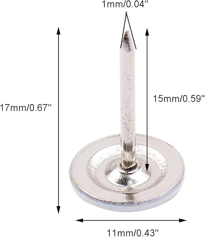 - PACKAGE CONTENT: 100Pcs white flat head upholstery tacks, enough quantity to meet your daily needs. Total Size:11mm*17mm/ 0.43" * 0.67"(Dia.xH), elegant for furniture decoration