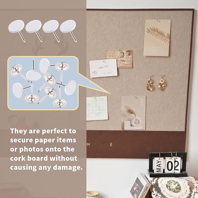 - QUALITY SERVICE: The upholstery tack is ideal for attaching paper items or photos to the cork board. If you have any questions about flat head thumb tacks, please feel free to contact us and we will try our best to help you
