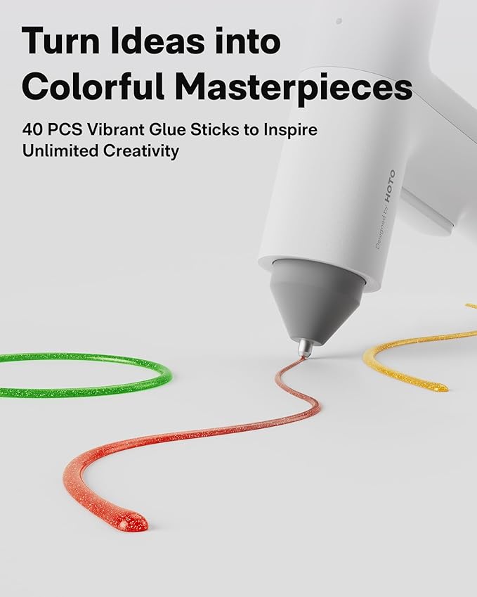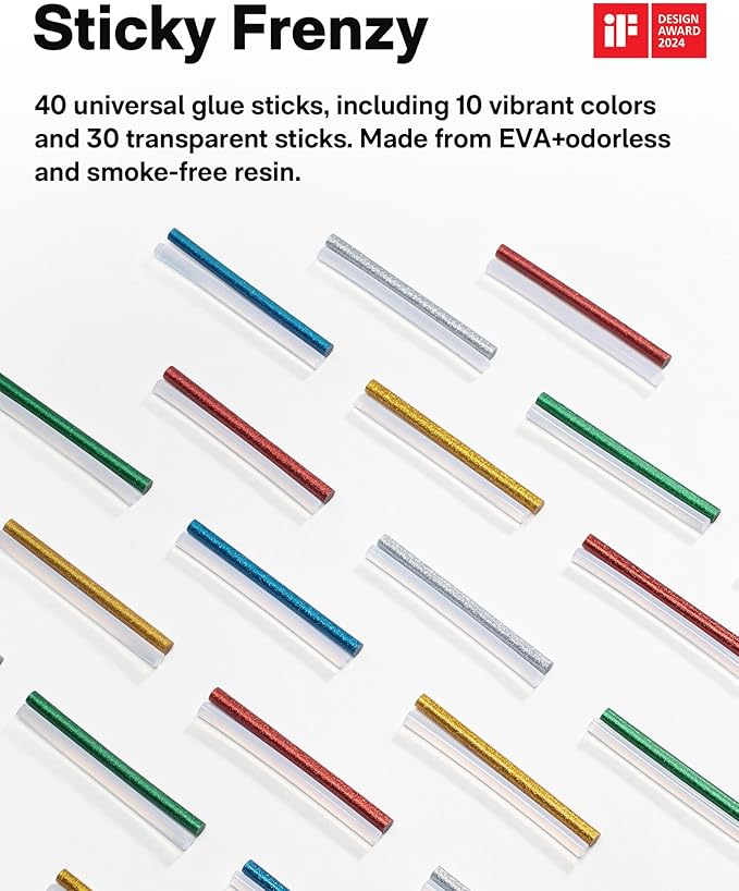 - 40 GLUE STICKS - UNLEASH CREATIVITY: Includes (30 clear + 10 colored sticks, 7mm diameter) designed to ignite imagination. Our vibrant colored sticks are perfect for adding visual highlights to kids' school projects, festive decorations, handmade cards, and personalized accessories. Formulated with high-quality, low-odor resin materials, our glue sticks are smoke-free and gentle for indoor use, ensuring a comfortable and safe crafting experience