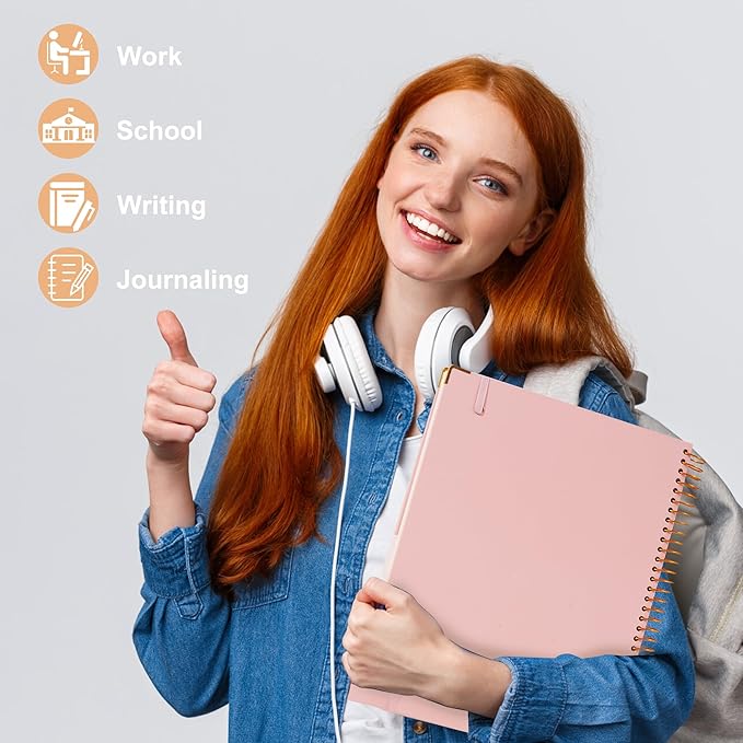 - Hardcover Notebook with Corner Protectors: The pink spiral notebook has a durable and water-resistant hard cover. It can easily be held in your hand for writing without table. And the gold corner protectors add a nice touch and keep from getting scuffed. Hold up well to frequent transfers in and out of bags, briefcases, and cars. Super sturdy for work and school use