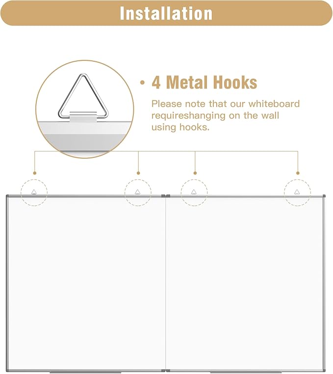 - 🌟✔ 【Flexible Mounting Options】 This whiteboard comes equipped with metal hooks on the longer side, designed specifically for horizontal mounting, ensuring an effortless installation to fit your space needs. Additionally, the double-sided foam tape on the back of the board guarantees a sturdy and shake-free writing environment.