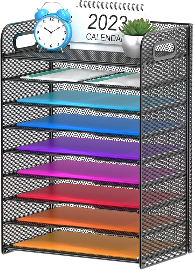Samstar 9 Tier Desk Organizer, Mesh Paper Letter Tray File Rack Shelves Paper Sorter Storage with Handles, Black