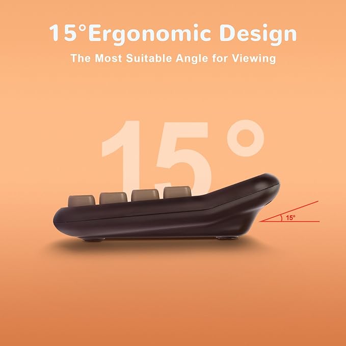 - 【IMITATION MECHANICAL KEYBOARD】Imitating the knocking feel of a mechanical keyboard (the keyboard cannot be disassembled without special tools), the key operation is fast and accurate, bringing a pleasant experience.. The touch of your fingers and the unique clicking sound are addictive.Large button, candy color.Large LCD screen,12-digit display, vertical back,15-degree angle for easy-to-read calculator