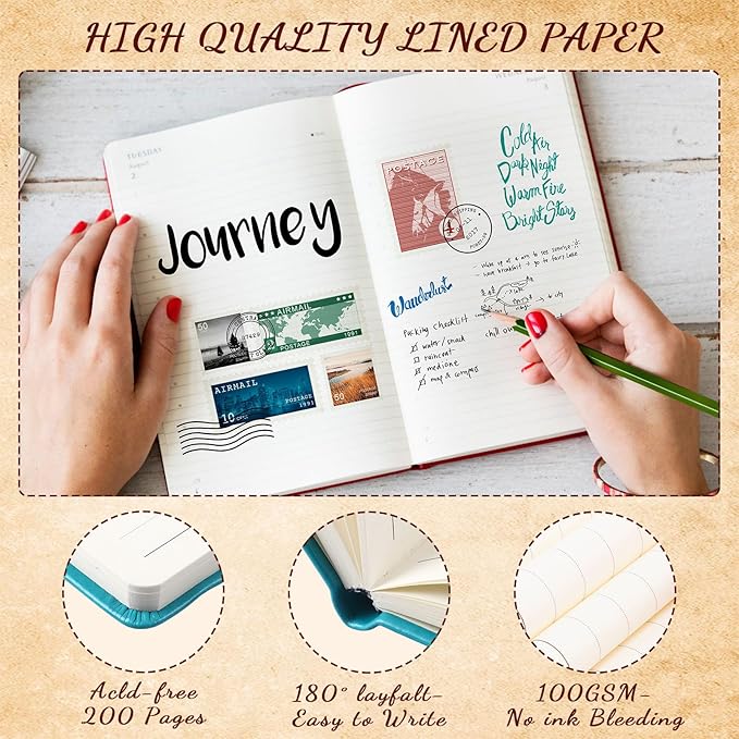 - Quality Material: our pocket notebook has 100 sheets/ 200 pages of lined paper, made of quality acid free paper in a light ivory color, thick enough to use, and you can write contents on the paper with most pens without worrying about ghosting or leakage; The cover is made of quality leather, hard enough to protect the paper in the notebook