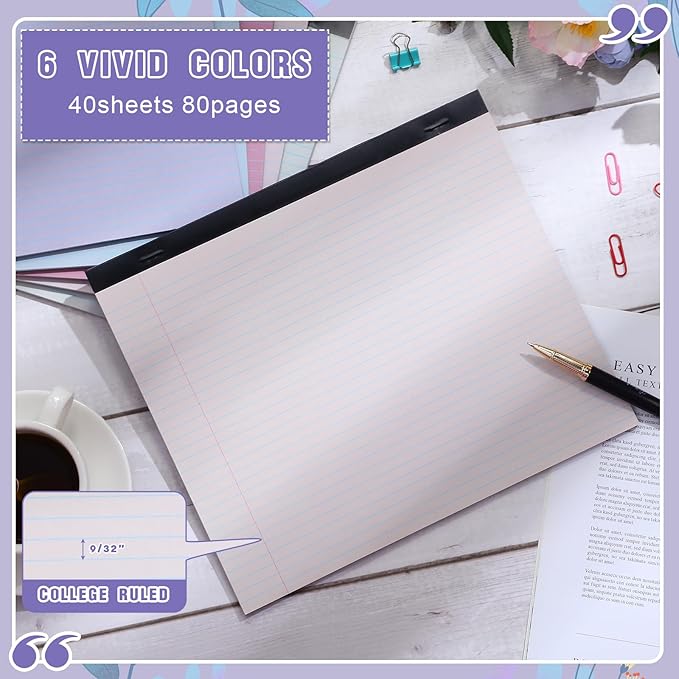 - 6 Colors to Choose: with 6 different colors to choose from, our legal pads college ruled add a splash of creativity and organization to your notes; Easily distinguish between subjects or projects by assigning a color to each, making your work more visually appealing and efficient