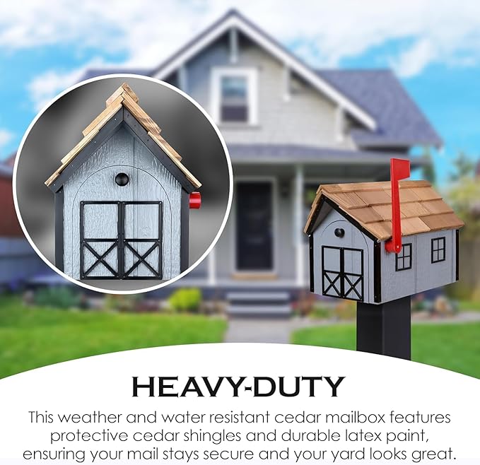 - A GOOD GIFT IDEA: Our outdoor mail box is creatively designed with a wooden barn style. It makes a good gift idea for special occasions like birthdays, Christmas, or Thanksgiving. If you know someone who just moved into their new home, this would also be a nice present for their housewarming party.