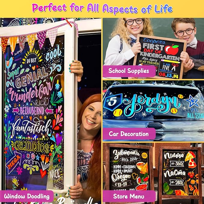 - SAFE AND NON-TOXIC: The water-based ink of these liquid chalk markers ensures easy usage without releasing any pungent odor. No matter if you're a teacher, mom, student, art enthusiast, or own a bistro or coffee shop, these chalks offer a comfortable experience. Ideal for everyone!