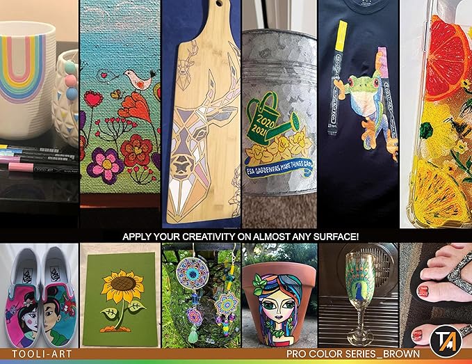 TOOLI-ART 22 Acrylic Paint Markers Pens Pro Color Series Set 3mm Medium Tip for Rock Painting, Glass, Mugs, Wood, Metal, Glass, Canvas, DIY. Non Toxic, Waterbased, Quick Drying (BROWN)