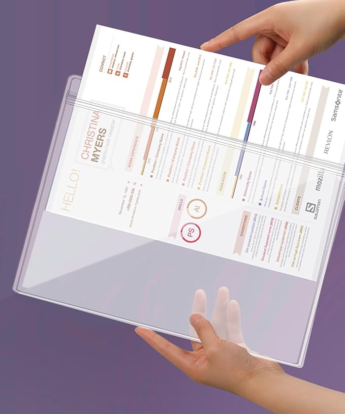 - Crystal Clear Visibility: Keep your important archives, copy paper, photos, records, recipes, and essential documents easily identifiable with these transparent document protectors. Their clear appearance allows you to view the contents from both sides, making organization a breeze!