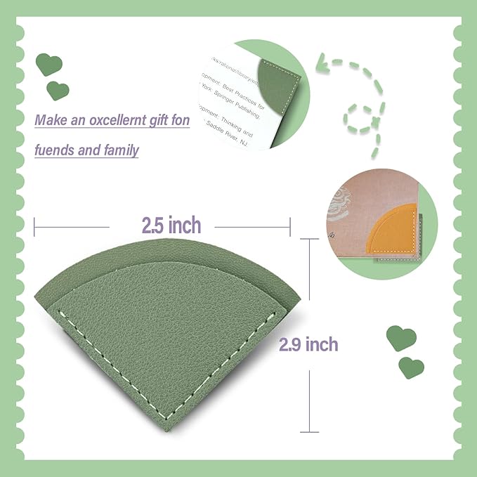 - Handmade Material: This Heart Bookmark is made of PU leather, the material of leather page corner bookmark is soft and does not hurt the book. The page clips is waterproof and durable, by hand fine sewing, comfortable to touch, not easy to loosen or wear, can protect the corners of the book, can be used for a long time.