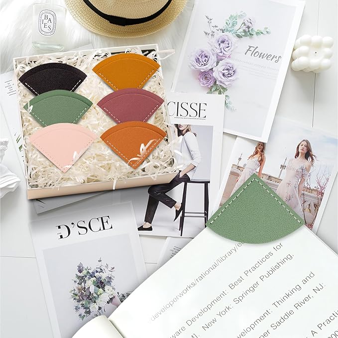 6 Pcs Fan-Shaped Page Book Marks - Leather Corner Bookmark for Women, Kids, Reading Lovers