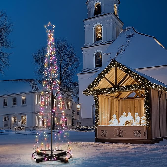 - [Stunning Visual Appeal] - With 640 multi-color LED lights and glowing star, this outdoor Christmas tree light creates a dazzling light show, great for enhancing the festive atmosphere in cafes, restaurants, bars, and at various markets and gatherings, making your space stand out and ensuring your store is visible from afar
