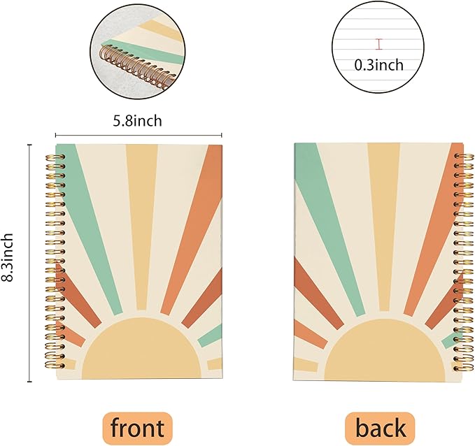 VNWEK Vintage Boho Notebook - Boho Journal, Boho Gifts for Women, Boho Office Supplies, Boho Sun Sunshine Spiral Notebook 5.5x8.3,Writing Notebooks