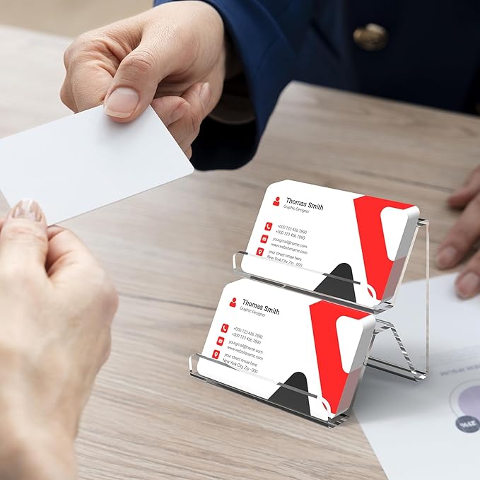 - Premium Material: High-quality acrylic endows the business card holder with high clarity and durability. Easy to clean, and you don't need to worry about the clear business card stand being getting dim or turning yellow.
