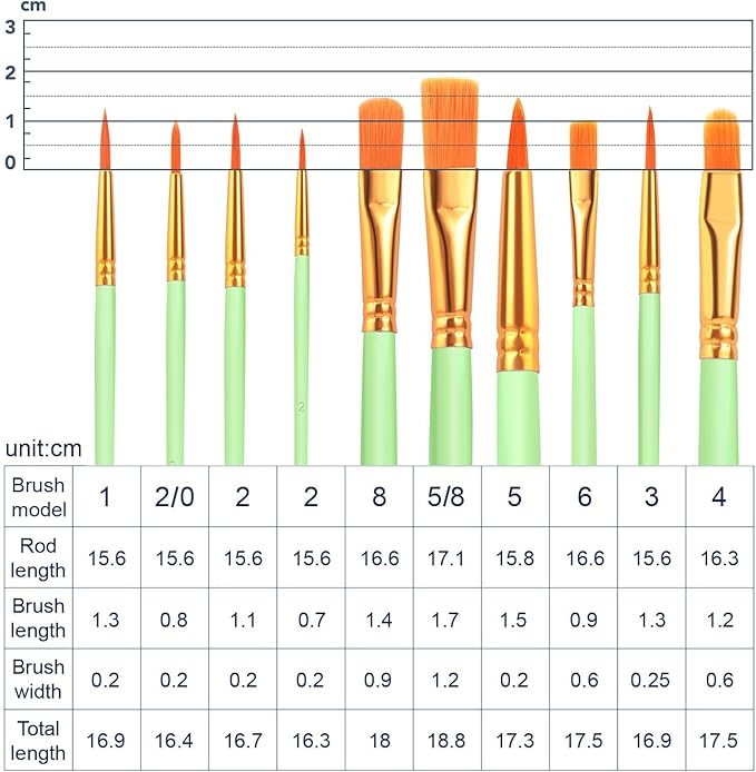 - 【All Sizes of Paint Brushes】: The 10 sizes of multi-functional brushes have various shapes, making the mixing color easier, which is very suitable for artists, students, teenagers, children, and painters at all levels. Wonderful gift ideas for friends and family who like painting!