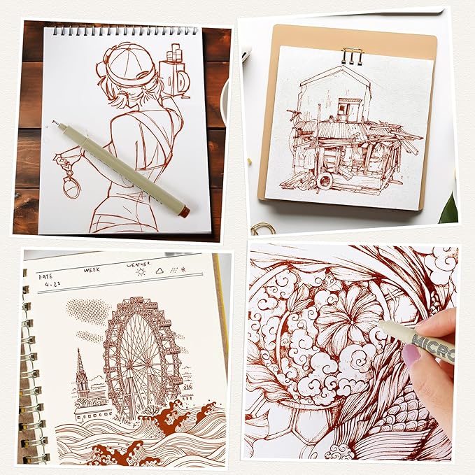 - šØ Unique Sepia Ink: KERIFI sepia micro pens uses highly saturated sepia pigments, unlike the touch provided by black lines, sepia ink makes the lines in the drawing subtle, giving it some elegant vintage flair. Paired with watercolor painting, the drawing is softer and added dimension to drawing. Let's do a variety of bold creative attempts, such as painting some tree trunks, tree houses, autumn scenery, landscapes and portraits.