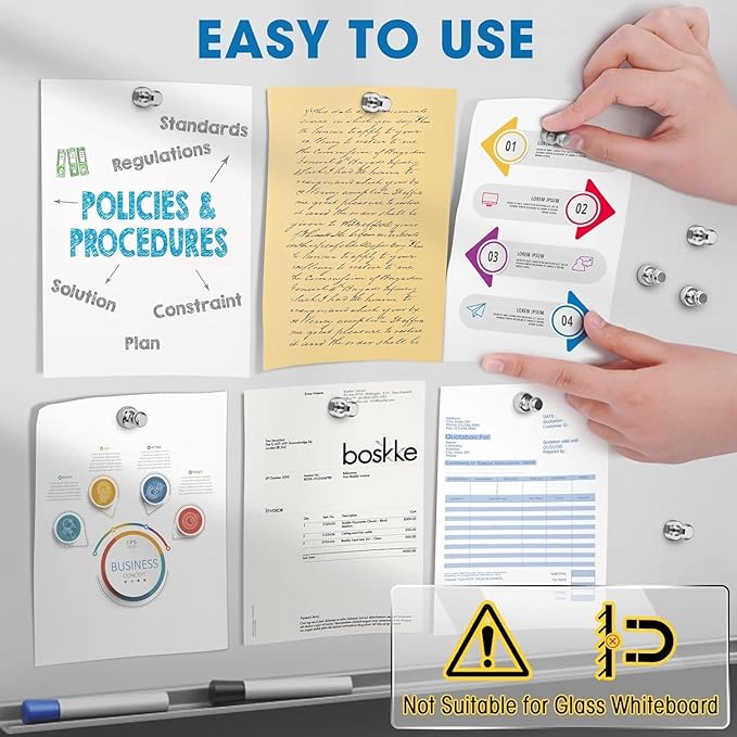 - 【Wide Range of Applications】 Ideal for use in offices, kitchens, classrooms, and more, these magnetic push pins conveniently secure notes, photos, posters, and cards to whiteboards, bulletin boards, magnetic maps, file cabinets, and other magnetic surfaces.