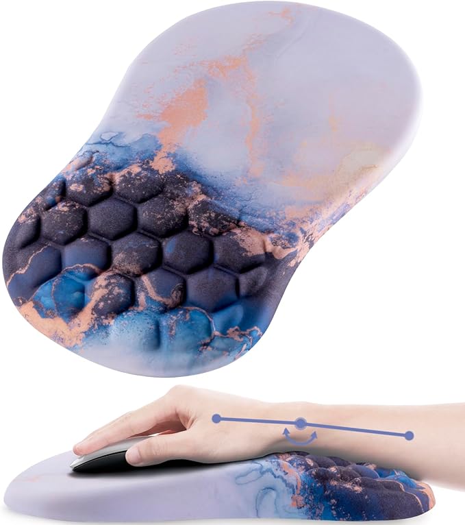 Mouse Pad Wrist Support, Ergonomic Mouse Pad with Wrist Rest, Comfortable Computer Mouse Pad for Laptop, Pain Relief Mousepad with Non-Slip PU Base Blue Black White