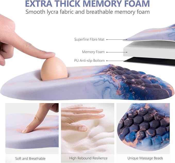- 【Ergonomic Mouse pad】 the mouse pad is made of 100% memory foam, and the tilt angle on the surface can keep your arm always in the in proper alignment. The ergonmic structure of the arched part provides the maximum comfort to your wrist, and prevents the carpal tunnel syndrome.