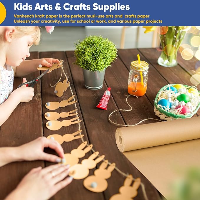 - 【Thick and Reliable Paper】Made with industrial grade heavy duty paper, Vanhench brown wrapping paper roll is sturdy and thick, does not rip or tear easily. The kraft paper roll can be used as parcel packing paper, great protection for shipping, packing and moving, better alternative to newsprint paper sheets and construction paper for arts and crafts paper. Meets your needs for everyday use.