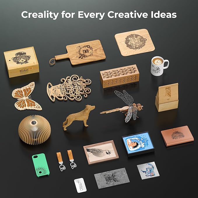 - 【Unleash Your Creativity】This laser engraver and cutter machine is an excellent gift for friends and families or yourself to make personalized gifts, such as wedding, Christmas and more. The machine can be used for creating a million of DIY projects based on hundreds of materials plywood, hardwood, metal, leather, glass, paper, dark acrylic, fabric, and more. Also, it can be used to cut wood, paper, leather, black acrylic, etc.