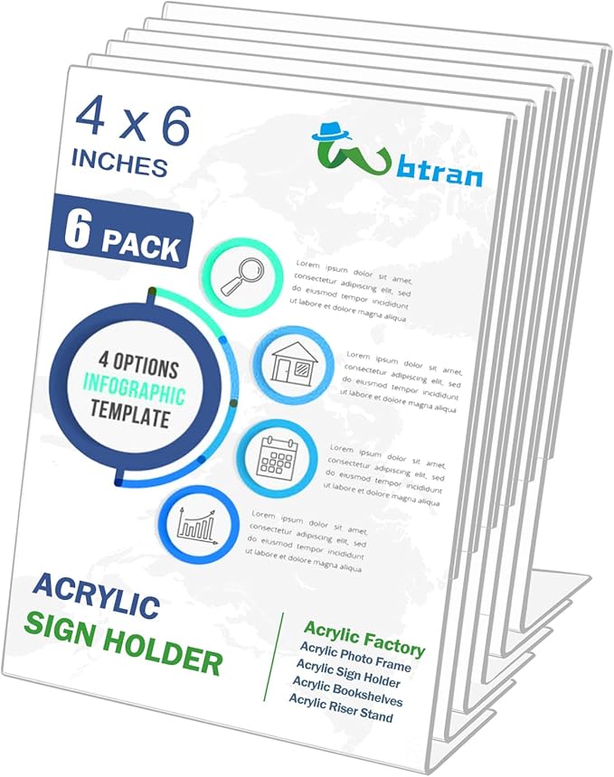 - ★【Acrylic Sign Holder 4 x 6】: Our acrylic sign holder is a standard size of 4 x 6 inch, suitable for all pictures, text and logos printed.