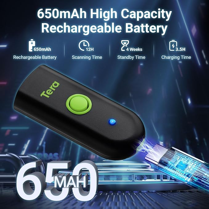 - 【Multiple Configuration Options】Tera wireless barcode scanner support instant upload and storage mode two types use modes, also support turn on or off the sound and vibration, hide/add custom prefix/suffix digits and so on. freely choose by your needs.