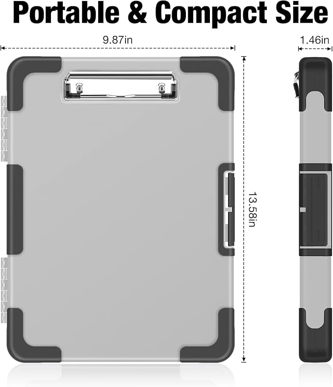 - On-the-Go Convenience: Compact and portable, this clipboard is your trusty sidekick wherever duty calls. From office to fieldwork, meetings to classrooms, conquer tasks with ease – anytime, anywhere.