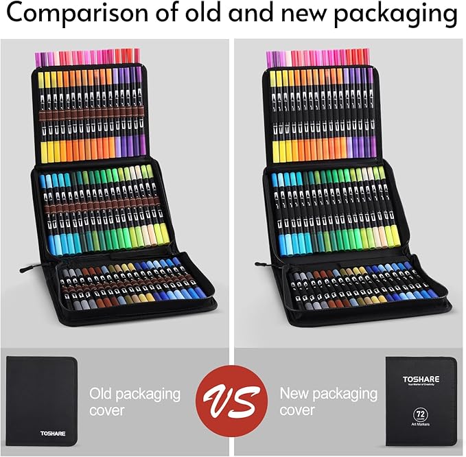 - Packing List: 72 coloring markers, 1 portable case, 3 brush tips, and 3 fineliner tips. Feel free to get in touch with us if you have any questions