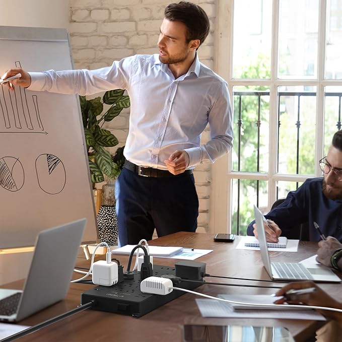 - 【Power Strip with USB Ports】The 1875W/15A large power surge protector is equipped with 2 USB A and 2 USB C charging ports (17W total output), built-in smart charging technology, which can automatically charge your phone, tablet, watch, headphones, game controller, and other stuff quickly up to 5V/3A